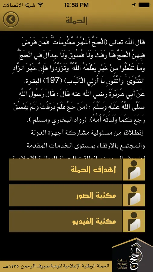 إنطلاقا من مسئولية مشاركة أجهزة الدولة والمجتمع بالارتقاء بمستوى الخدمات المقدمة لضيوف الرحمن، انطلقت الحملة الوطنية الإعلامية لضيوف الرحمن 1435هـ، من أجل توعية المجتمع بشكل عام وضيوف الرحمن بشكل خاص، بأهمية التقيد بالنظام للوصول لمستوى افضل في الخدمات.