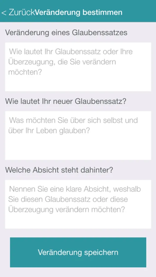 Bei der Meditation zur Veränderung von Überzeugungen und Glaubenssätzen wechseln Sie in einen neuen Seinszustand. Dies ist durch die Verbindung einer klaren Intention mit einer Emotion möglich. Um ein wirklich klares Ziel fokussieren zu können, liefert Ihnen die App verschiedene Funktionen, die Sie dabei unterstützt.