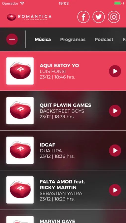 La línea programática de Romántica se centra en lo mejor de la música latina tanto de artistas nacionales como extranjeros, ya sea presentando sus éxitos recientes o en formato de clásicos. A pesar de ser una radio netamente musical, cuenta con boletines informativos a lo largo del día mezclados con programas de conversación.