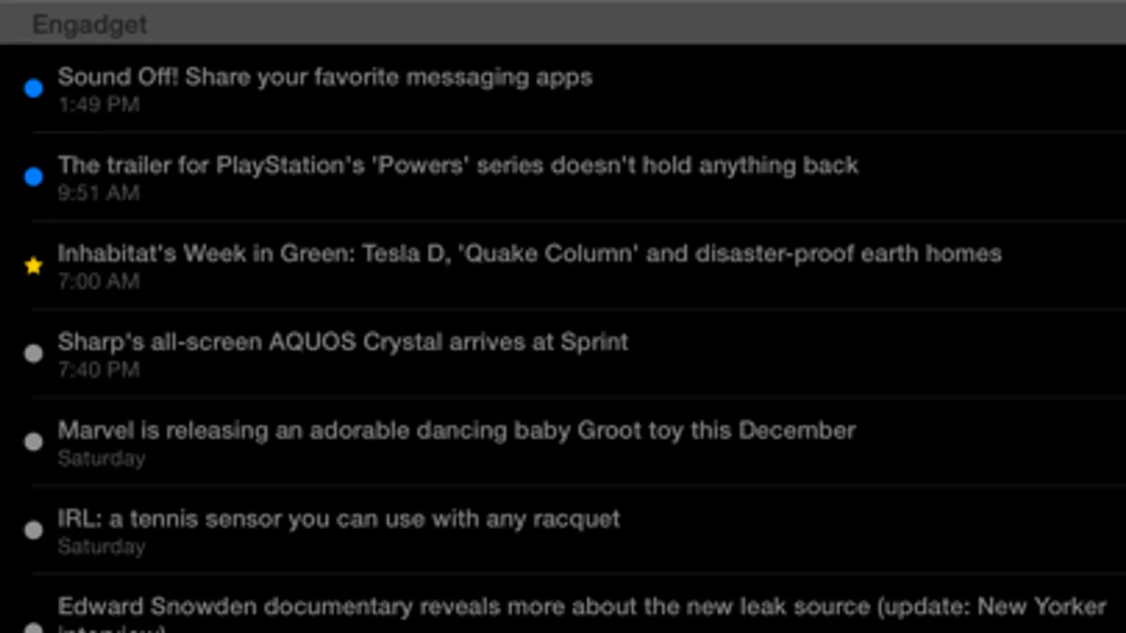 * Swipe RSS articles for navigation, and pinch articles to change font size.
