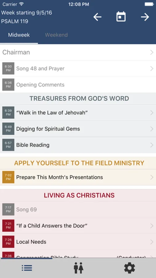 This software is intended to use as a companion with the desktop version of the software (Theocbase), which can be downloaded from www.theocbase.net. TheocBase Mobile is useful for those maintaining LMM schedules in Jehovahs Witnesses congreagtions. To use Theocbase Mobile you need to install and configure TheocBase on your desktop computer. You can then connect the app to your Dropbox account and synchronize data between desktop and mobile application. You can establish the Dropbox link from the desktop software. Synchronizing works both ways so you can edit schedule and assignment details in the mobile version and pass information to desktop version via Dropbox account.