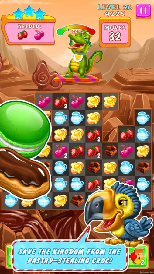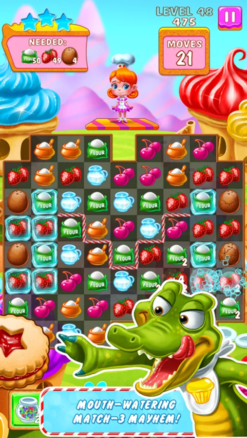 Travel through lands of flaky pastries, thick cream, and rich chocolate to match ingredients and create delectable sweets in this match-3 puzzler. Just watch out for Croc, the nasty pastry-swiping crocodile. Reptiles aren't supposed to have a taste for sweet stuff, but apparently he didn't get the memo.