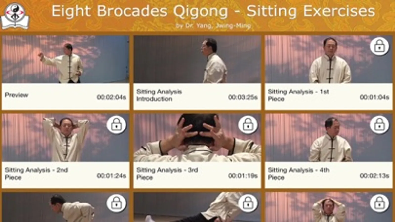 This app gives you sample videos and offers an opportunity to get the full sitting qigong video at the lowest possible cost. Now you can practice Master Yang's popular qigong exercises using your phone or tablet. This is a convenient training tool you can bring anywhere, to access this amazingly powerful exercise whenever it fits best into your day.