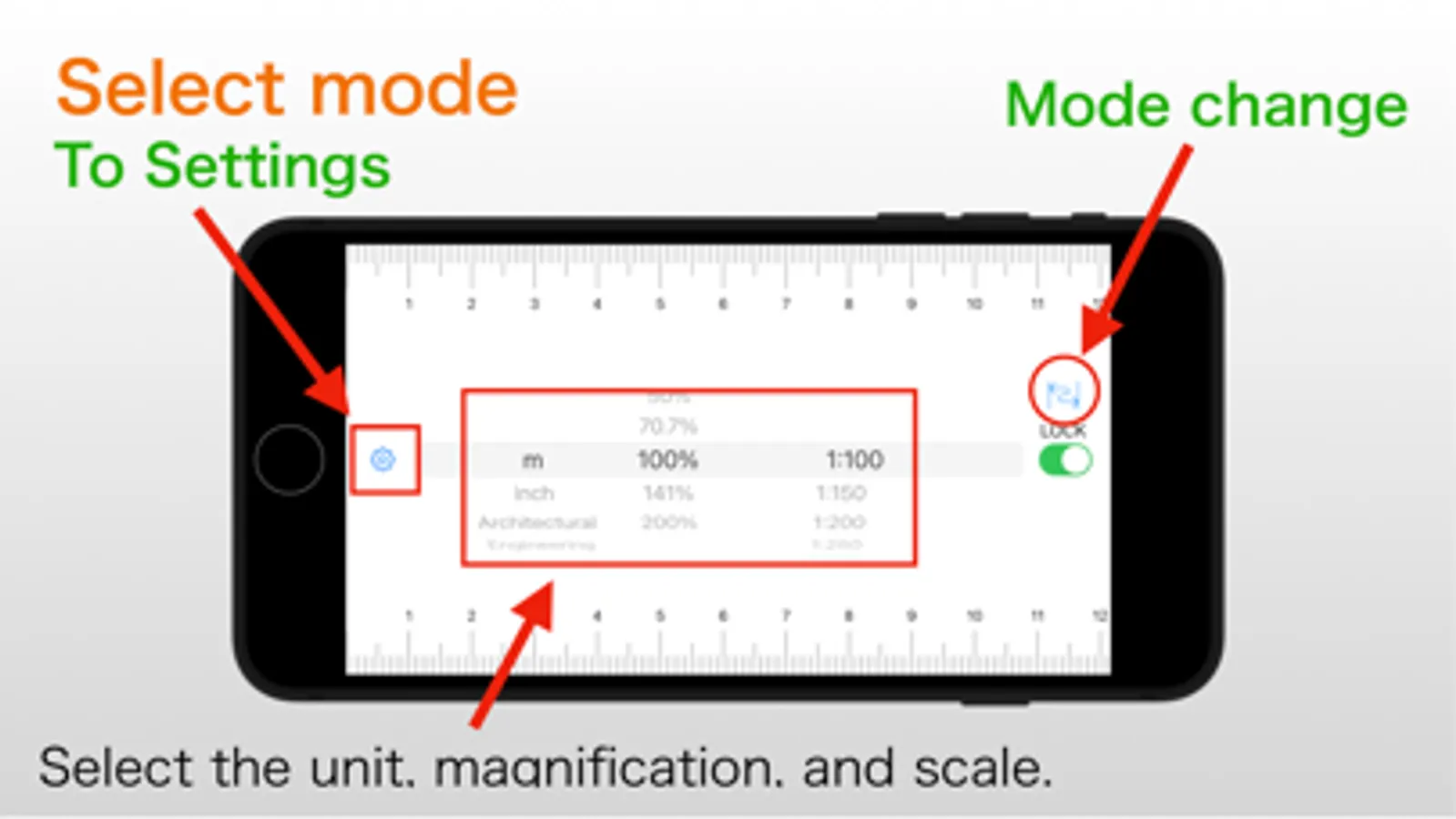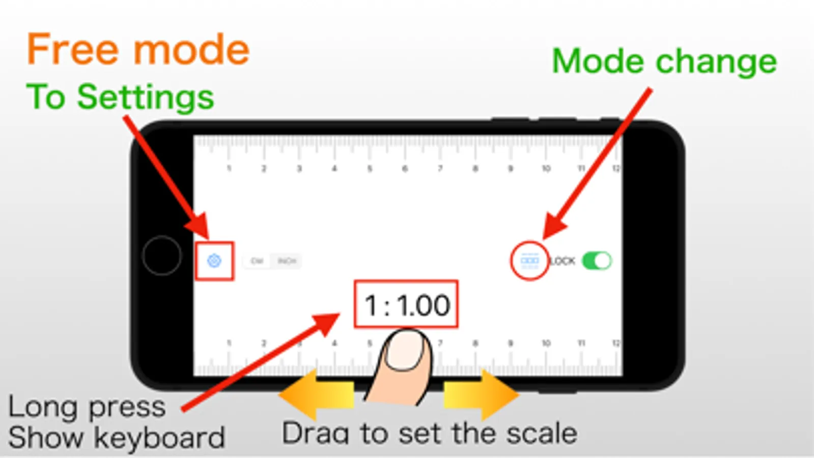 When dragging the screen at UNLOCK, you can set the scale in the range 1: 1 to 1: 100.