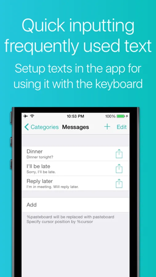Using CannedText's keyboard you can input frequently used texts while you're using other apps.