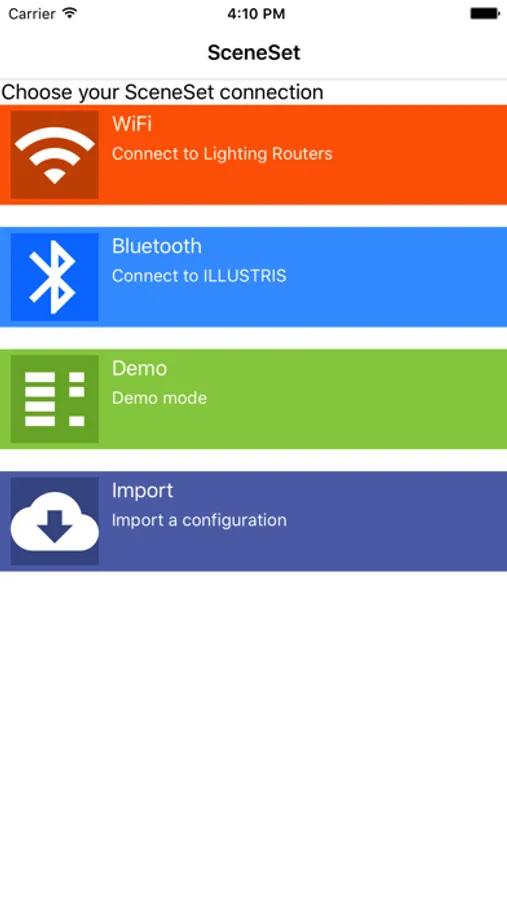 SceneSet is an app for controlling Helvar's Imagine® Router system over WiFi, or connecting to the new ILLUSTRIS control panels using Bluetooth®.