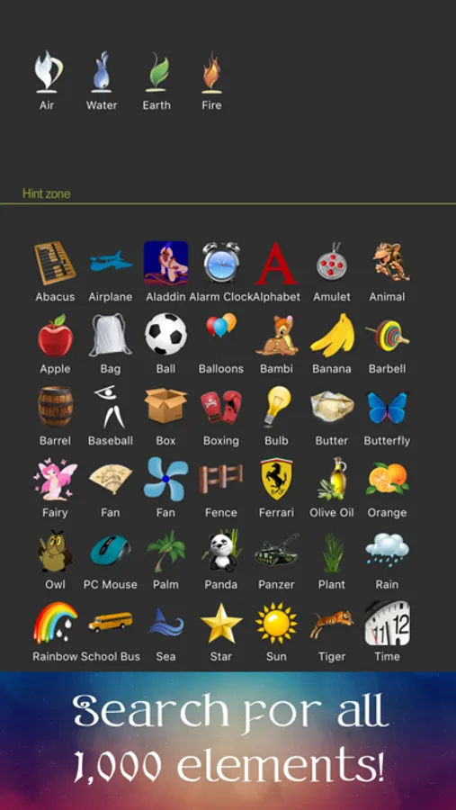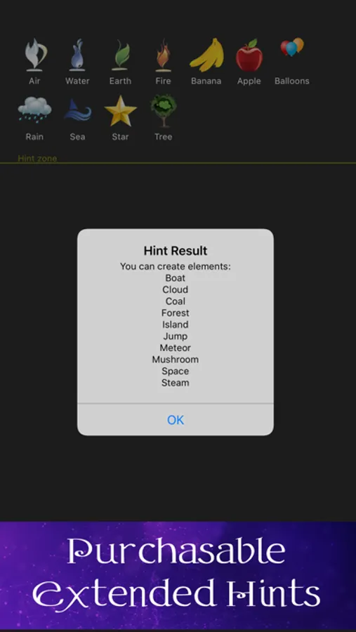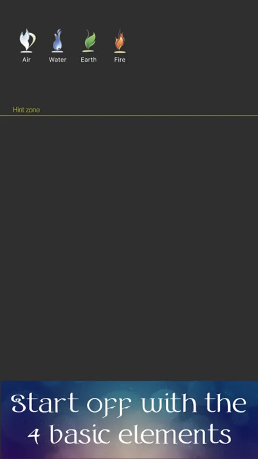 Can't create any more new elements? Simply place one or more items to the top of the screen and click the "Hint" button in menu. The hint can be simple (just a number of possible elements) or extended (also see their names). The type of hint can be changed in the "Options" menu. See the in game help menu for full instructions.