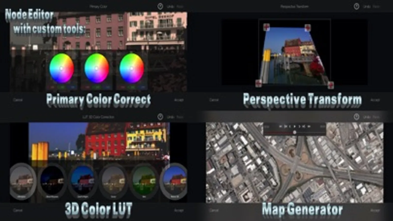 Mix multiple images and animate special effects to give your videos the finishing touches they need, from subtle regional color correction or exposure adjustment, to wild cartoon colors or funhouse-mirror distortions.