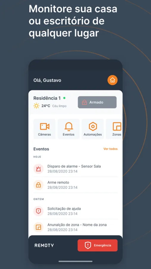 O App REMOTY mantém você conectado com todas as coisas que mais importam. É uma maneira fácil e conveniente de garantir a proteção de sua casa e sua família. Com o REMOTY, você pode saber quando: