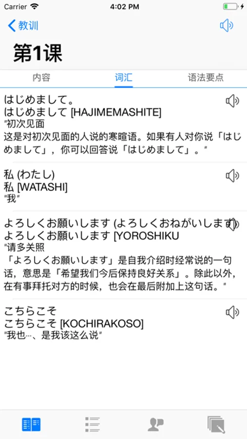 非常有用的應用程序,適合初學者學習日語, 在每節課中都有一個基本和高級日語詞彙表, 每節課都有額外的日語語法。