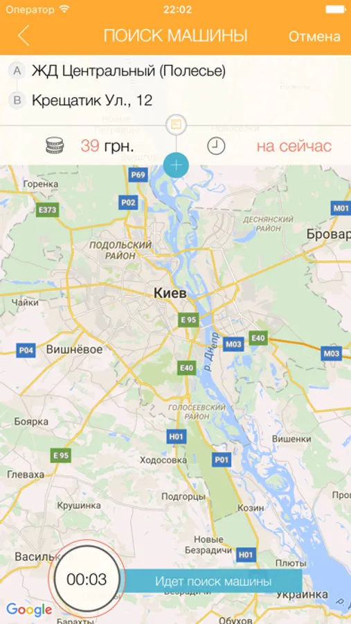 - Одновременный поиск среди всех машин такси в Киеве и Одессе