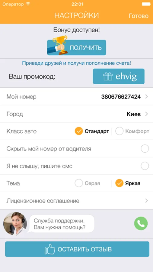 - Возможность видеть и оставлять отзывы о поездке в такси