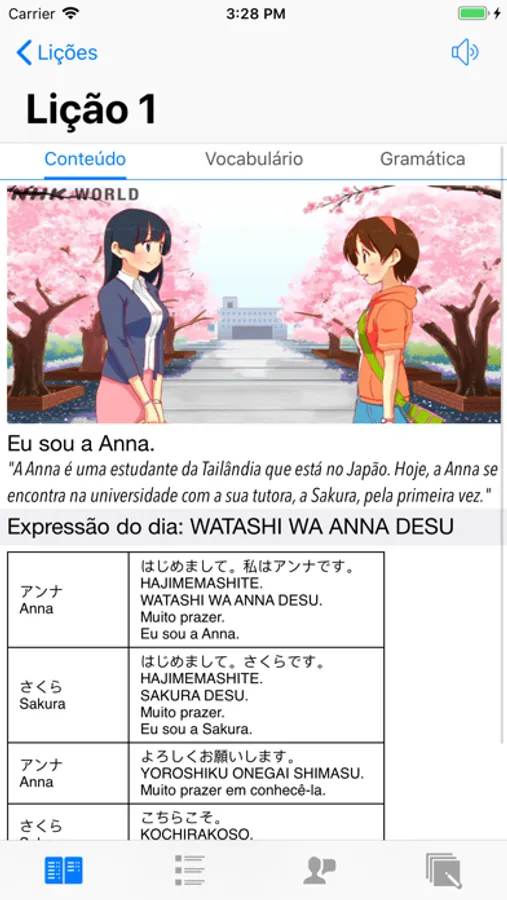 O "Curso de Japonês" é um programa composto de lições de língua japonesa produzido pela NHK WORLD RÁDIO JAPÃO, a emissora pública japonesa. Por meio de lições baseadas em histórias auditivas, você vai aprender a gramática básica e expressões úteis da língua japonesa. O áudio e os textos de cada lição podem ser baixados gratuitamente.