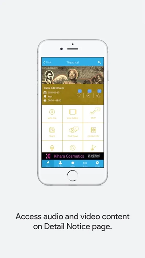 Events organizers get your event or products to the thousands of users of this digital platform!!! Display social event details, flyers, audio and video adverts, programme outline and agenda for business events, seminars and workshops. Send push notification to potential attendees and RSVP patrons. Interact live with your patrons and keep them up to date with your event or product. Obtain feedback from your customers live on Digital Noticeboard.