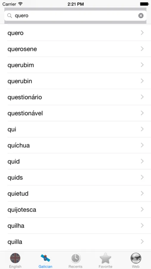 User will be satisfied with this Galician - English dictionary because:
