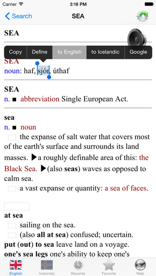Þetta forrit er hægt að keyra í offline háttur en þarf nettengingu fyrir framburði og vefur bókamerki virka.