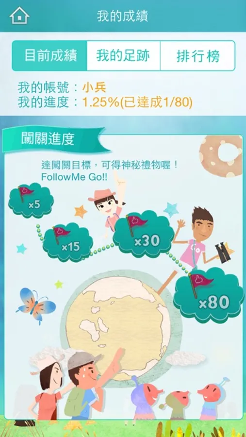 4、我的成績:紀錄尋寶遊戲累積的點數,看看自己與其他使用者的成績,得到一定成績就可以兌換禮品喔。