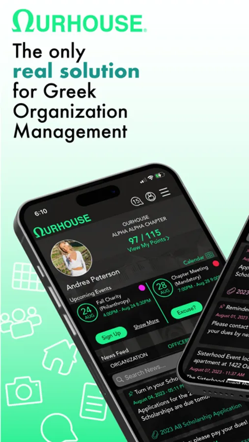 OurHouse is the leading membership management and group communication software for Greek chapters, student groups, non-profit organizations, and professional associations. We’re here to help you stay connected with your chapter, streamline daily operations, and make the lives of every officer and member much easier.