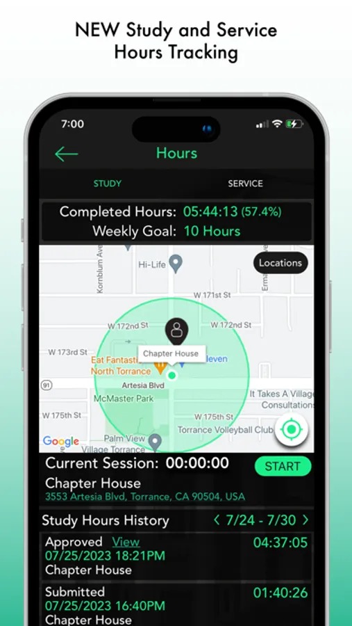 Note: When tracking attendance through the event calendar this app uses background GPS.