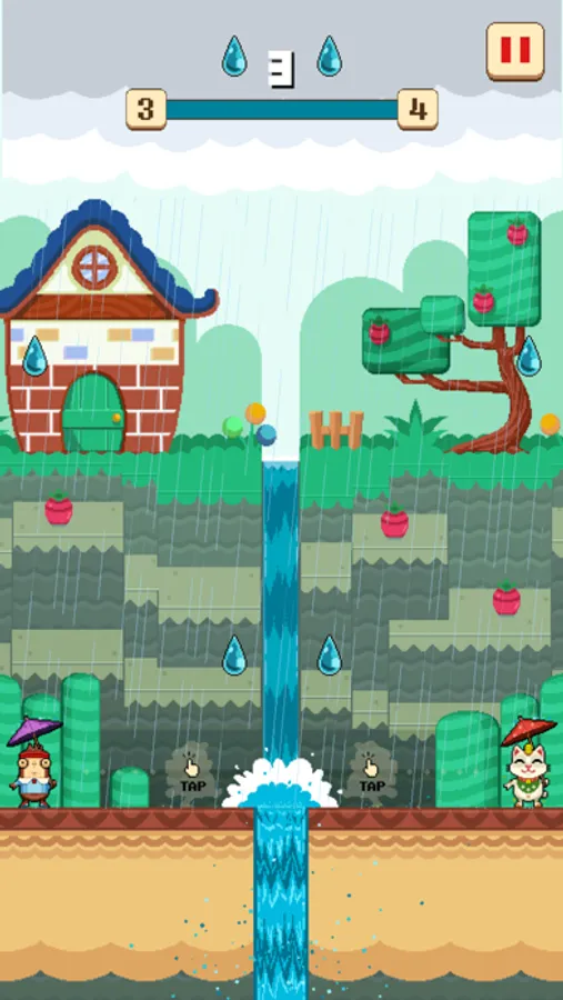 With the fate of two cute critters at your finger tips, it's up to you to avoid the raindrops and keep them from getting soaked!