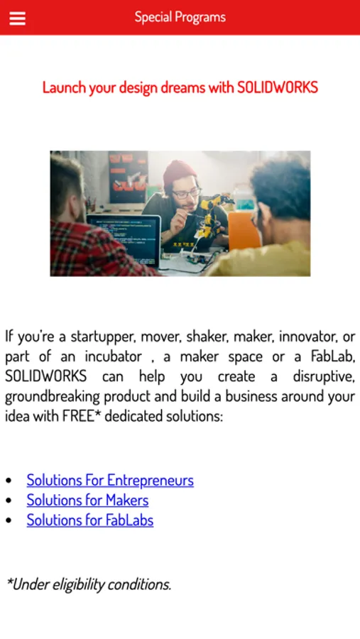 With SOLIDWORKS EDU app, discover what SOLIDWORKS® propose not only to kids, students and instructors but also to FabLabs, makers and entrepreneurs/incubators and share with your peers.