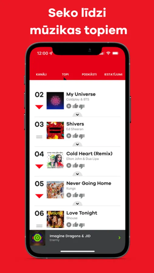 - iegūsti vadošo mūzikas topu informāciju un balso par dziesmām,