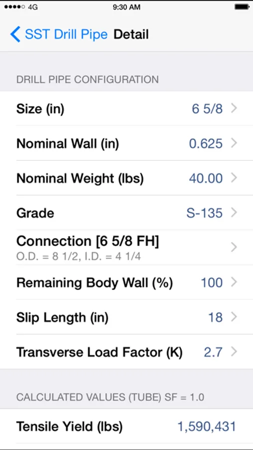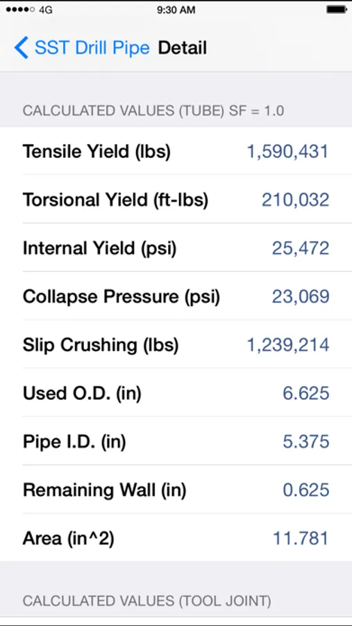 Tensile Strength, Torsional Strength, Internal Yield, Collapse Pressure, Slip Crushing, Make Up Torque, Torsional Yield of Tool Joints, Tensile Yield of Tool Joints, Drift Diameter, Capacity, Displacement.