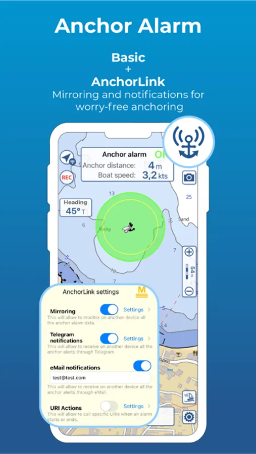 • Basic anchor alarm and AnchorLink with mirroring and email/telegram notifications