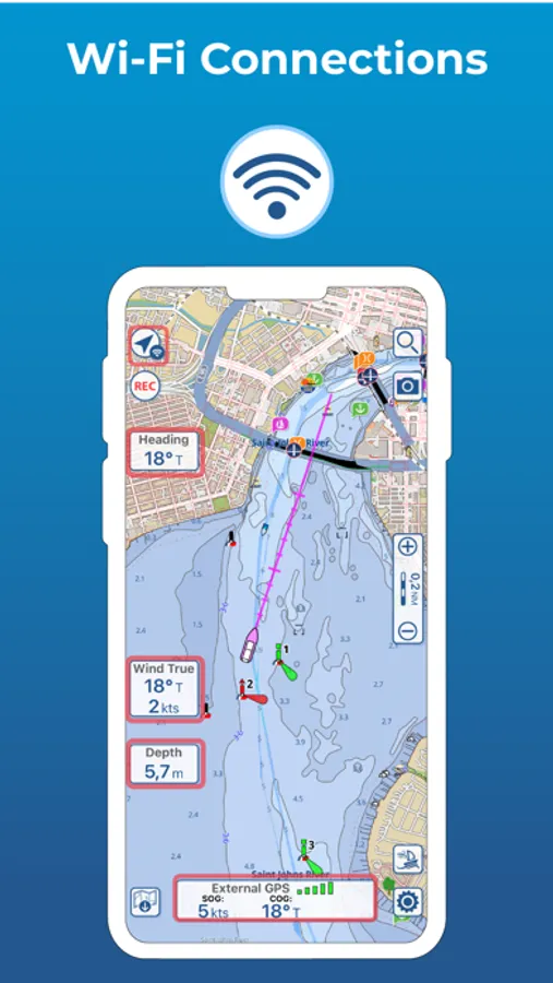 Connect AIS and your boat GPS and instruments data via WiFi connection. Plan routes, record your tracks, find new friends on the water and share your data across the Live Sharing community.