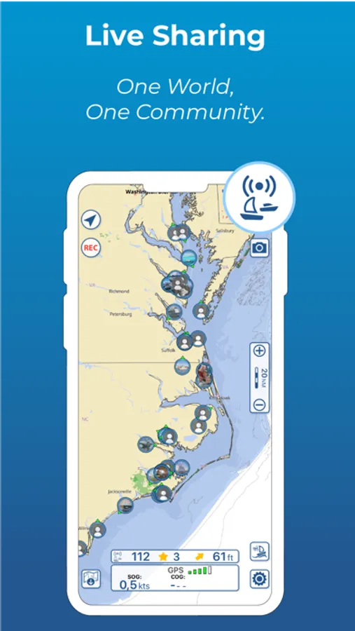 Join “Live Sharing” and become part of Aqua Map community: find new friend on the water, chat and send your data to anyone without leaving the app.