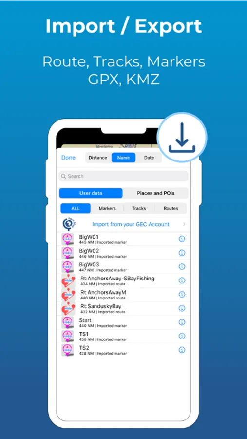 • Easy sharing and uploading of tracks, markers and routes