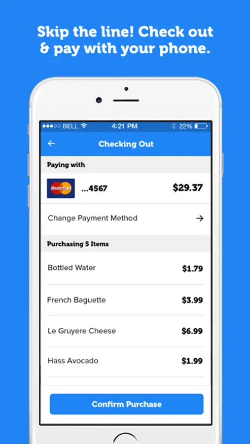 Mobile Checkout allows you to walk into participating stores, scan merchandise, and pay with your card on your phone, all while avoiding long lines at cash registers.