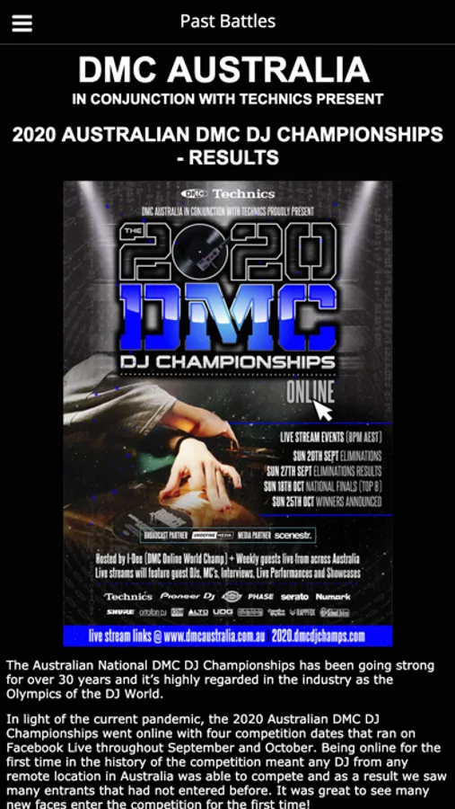 The Official Australian DMC DJ Championships app is here! Connect to the world's largest DJ Organisation.
