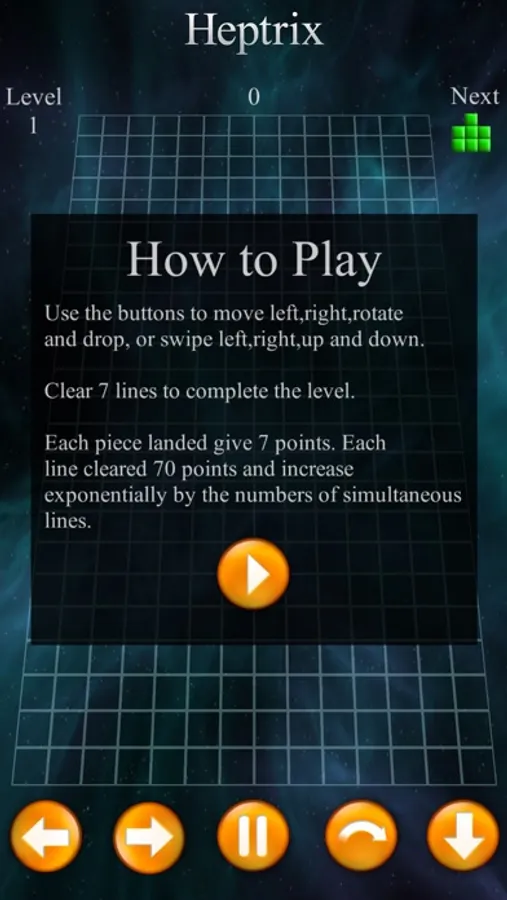 - Use the buttons to move left,right,rotate and drop, or swipe left,right,up and down.