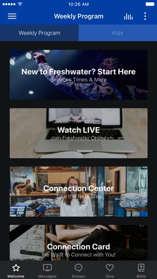 The Freshwater Church app was developed with the Subsplash App Platform.