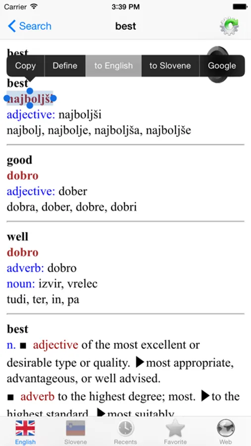 Uporabnik bo zadovoljen s tem slovensko - angleški slovar, ker: