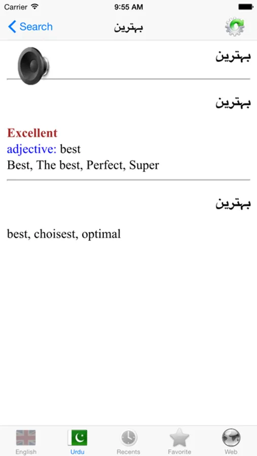 صارف کو اس اردو سے مطمئن ہو جائے گا - کیونکہ انگریزی لغت: