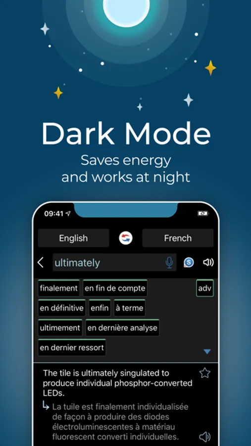 Just type or say the word or expression you wish to translate and the results will appear instantly: relevant translations, presented with examples of how words are used in sentences.