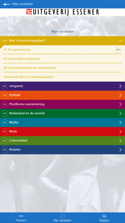 Met deze oefentoets-app kun je je kennis toetsen voor het vak maatschappijleer 1. Deze app hoort bij de methode Thema's Maatschappijleer van uitgeverij Essener, niveau VMBO-KGT.