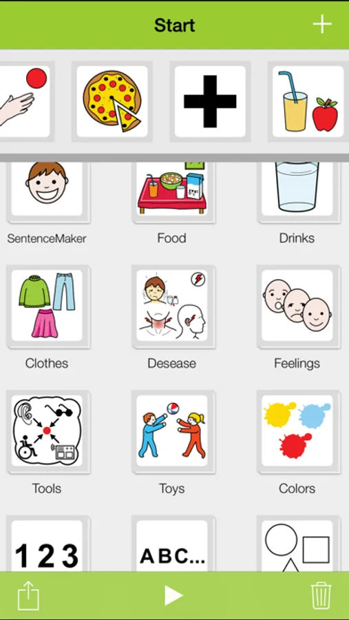 LetMeTalk enables you to line up images in a meaningful way to read this row of images as a sentence. To line up images is known as AAC (Augmentative and Alternative Communication).