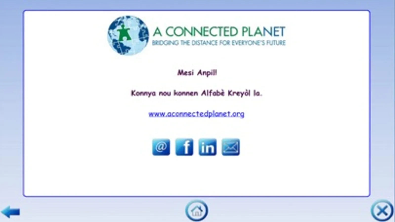 Alfabè Kreyòl was developed by A Connected Planet (ACP) Foundation for use in Haiti in ACP's Tablet Implementation Program.