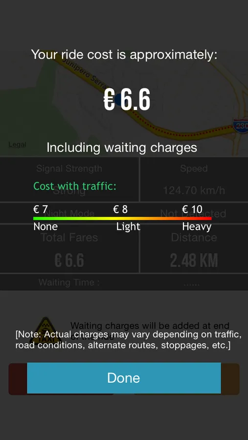 6. if you are taking ride at night then app will automatically notify you that night charges will be applied.