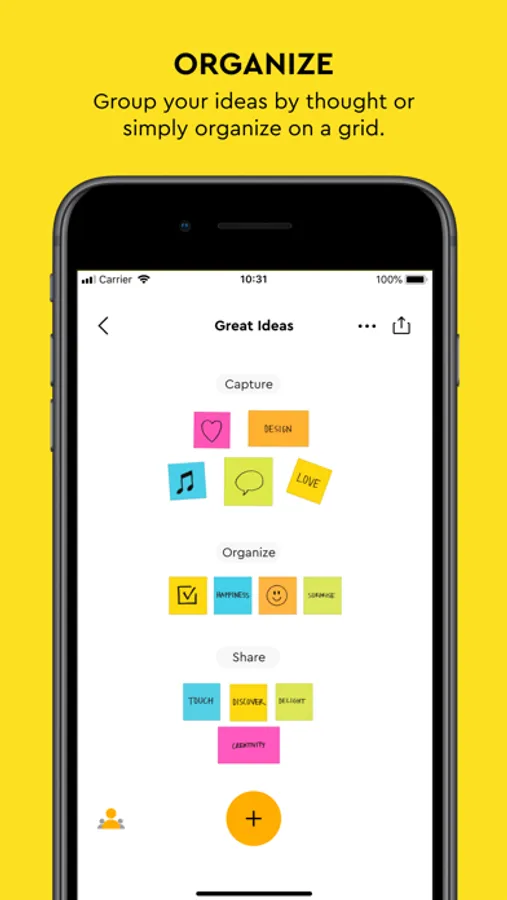 • Organize your way—group your ideas by thought or simply organize on a grid.