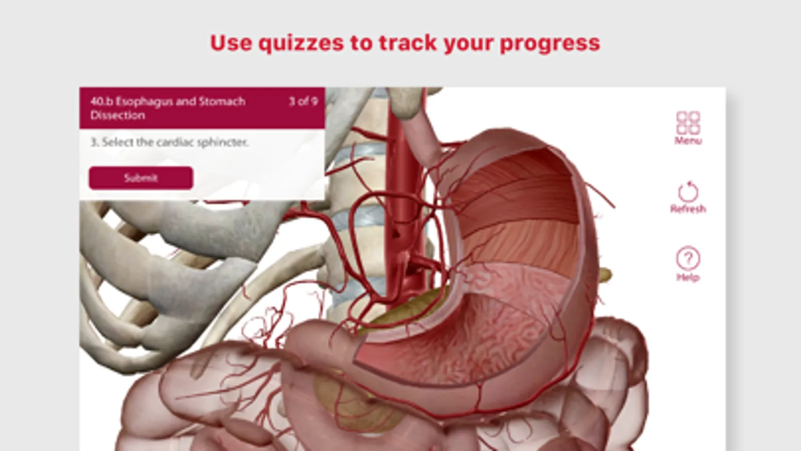 - Customize the app and track your learning. Create a library of Favorites with 3D models, illustrations, animations, and notes that you need to review. Access a question-by-question assessment of quiz performance to track your understanding of the concepts.