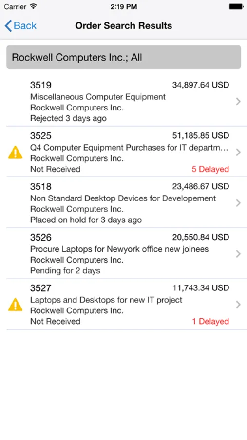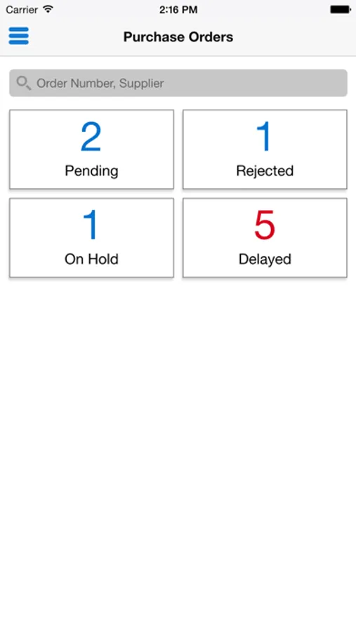 - Track purchase orders requiring attention (on hold, rejected, delayed, pending approval) and drill into details