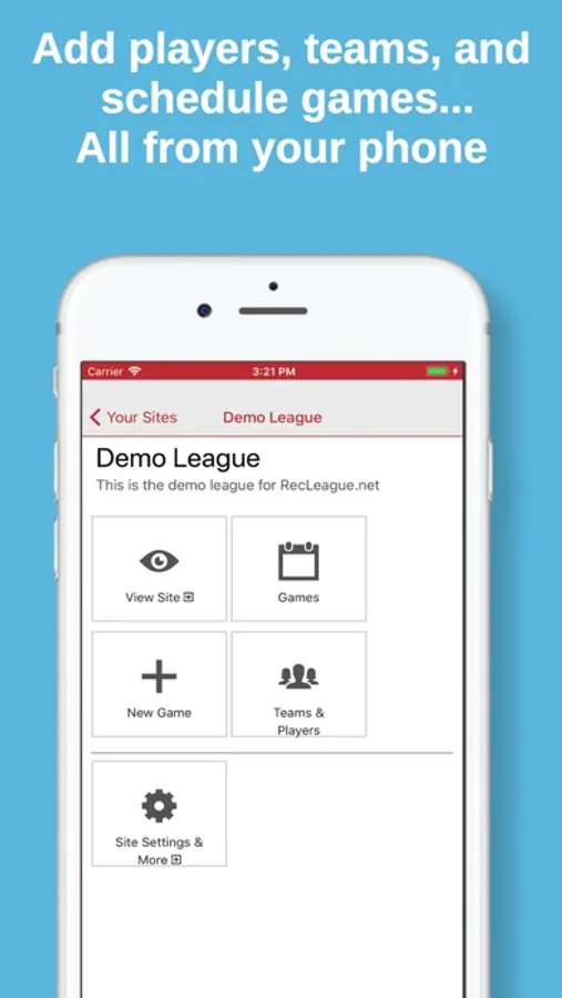 You can even use this app to get instant stats available on your custom website: (for example, www.recleague.net/yourleague). We'll take care of displaying team calendars, ranking teams in league standings, figure our league and team statistics leaders, and much, much more.
