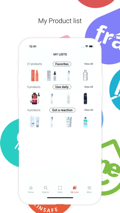 Create personalized lists of your favorite products, everyday products, and products that caused a reaction.