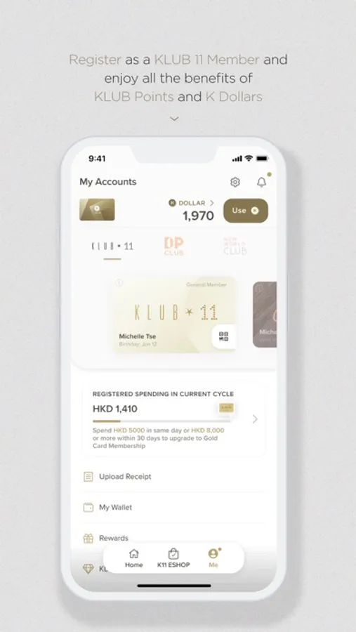 Manage your KLUB 11 Membership account—earn, track and redeem privileges with KLUB Points and convert them into K Dollars to spend as cash throughout the K11 ecosystem!