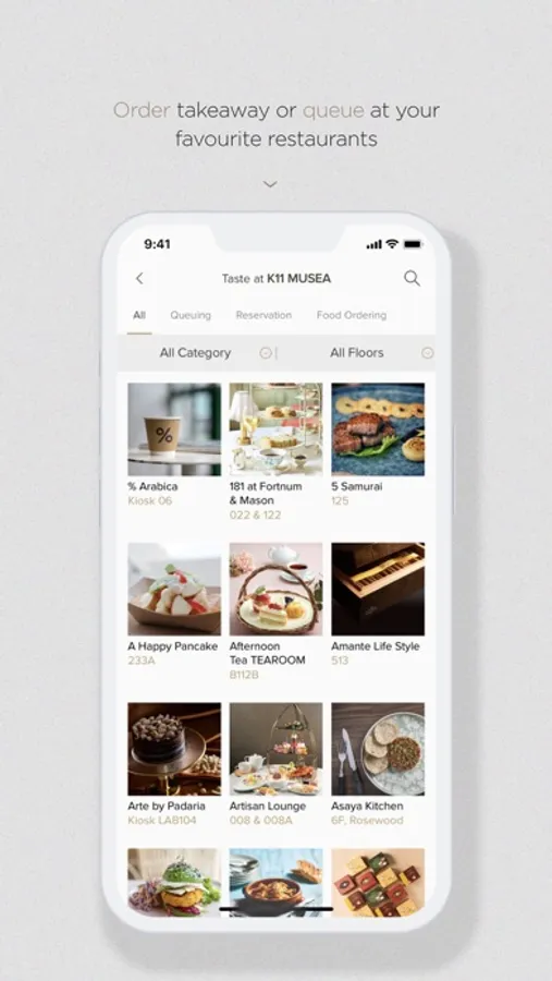 Order takeaway or click to queue directly at your favourite restaurants.