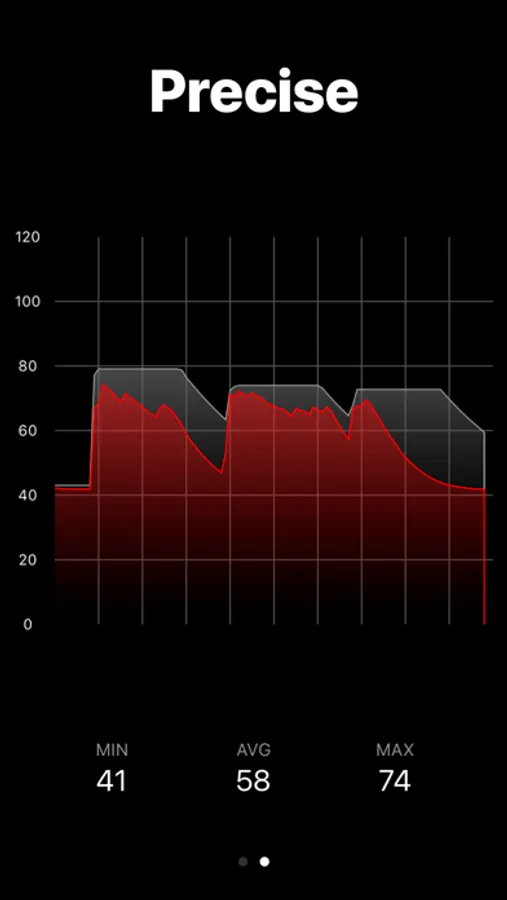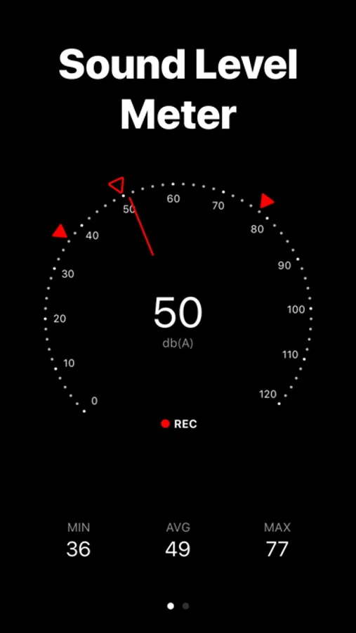 • Display average, max and min levels of decibels.